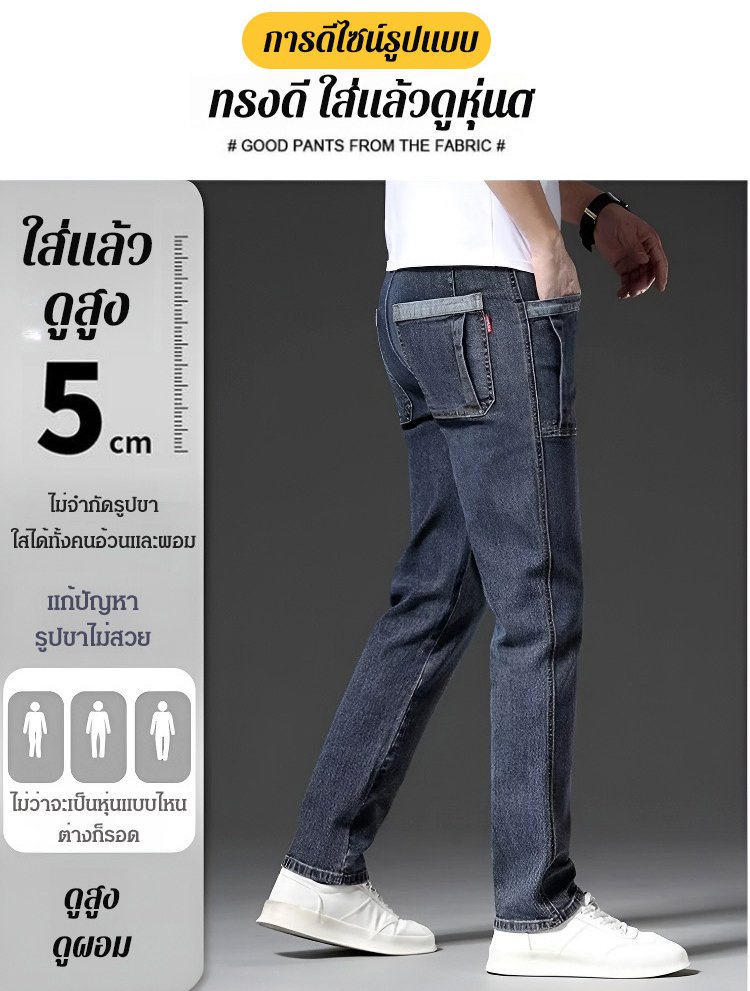 กางเกงยีนส์ทูโทน กระเป๋าใหญ่ ยืดหยุ่นสูง